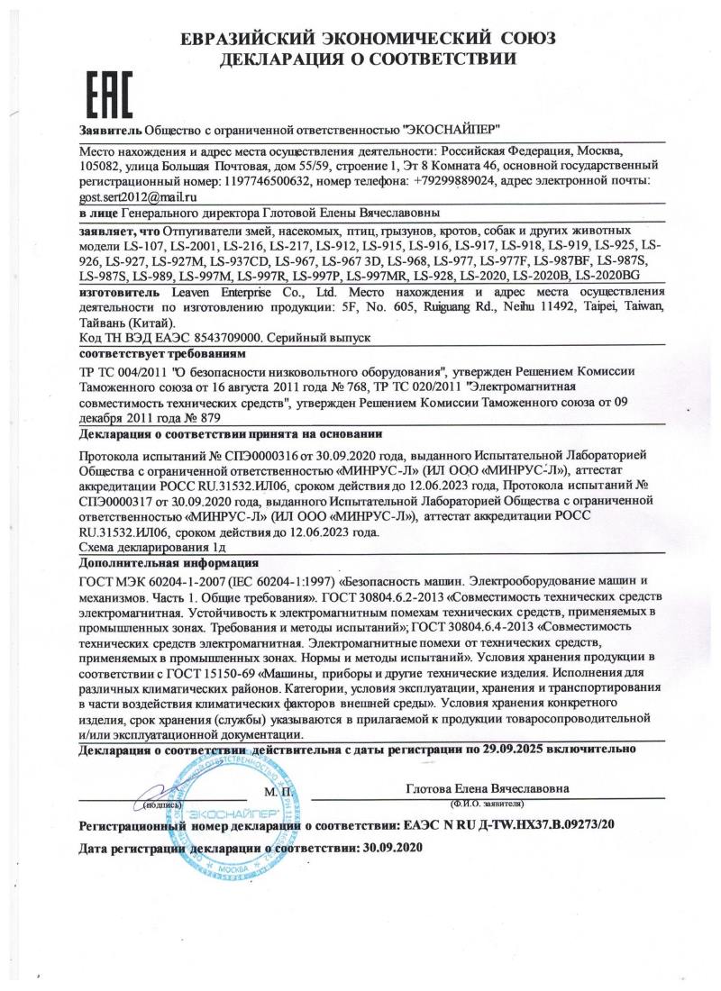 Приобрести ультразвуковой отпугиватель комаров "Экоснайпер LS-216" в Павлово можно, оформив заказ в нашем онлайн-магазине. Экоснайпер LS-216: цена, отзывы, подробное описание.