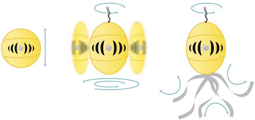 - Качественные материалы и продуманная конструкция. Отпугиватель имеет тканевое покрытие ярко-желтого цвета на основе нейлоновых нитей с водоотталкивающей пропиткой. Окраска ткани устойчива к воздействию ультрафиолетового излучения: не выгорает на солнце и не теряет яркость со временем. Ткани также не страшны мелкие порезы. Устройство комплектуется карабином-вертлюгом, который препятствует запутыванию при вращении. С учетом малого веса самой полусферы это позволяет отпугивателю легко вращаться даже от слабого ветра.
